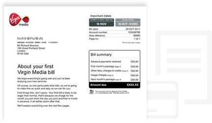 Virgin Media Service ChargesAny fees that are due, including your price plan bundles.