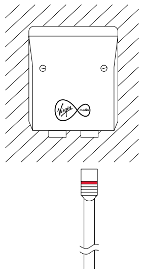 Take the red end of the co-ax cable and connect this to the right hand side port of your Virgin Media wall outlet.