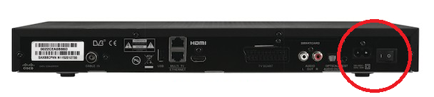 Make sure the A/C power switch on the back of the Digital TV box is in the ON position (the ON position is where the 'I' symbol is pressed in).