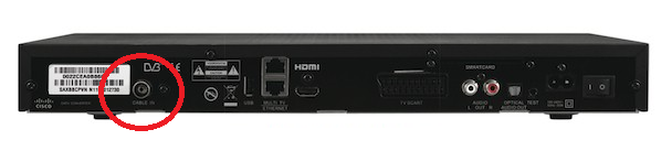 Now take the blue end of the co-ax cable and push this into the co-ax port on the back of your Digital TV set top box.