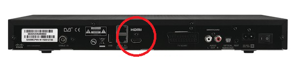Next, connect one end of the HDMI cable to the set top box and the other end to the HDMI port on your TV set.